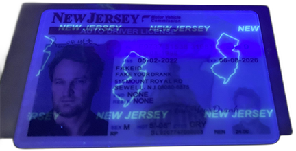 6. UV ink in the shape of the state as well as repeating "NEW JERSEY" ensures that this ID will pass under a black light test.